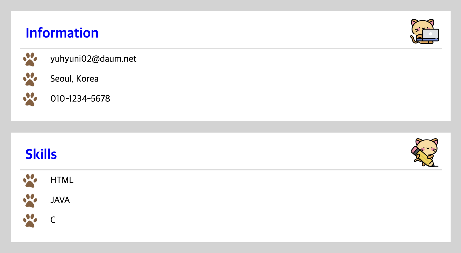 공통으로 적용할 속성을 상위 클래스(section)에 작성하고 클래스 접근연산자(.)을 사용하여 변경할 스타일만 하위 클래스(skill)에 작성